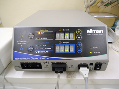 高周波ラジオ波メスで出血と組織ダメージが少ない手術をしています。